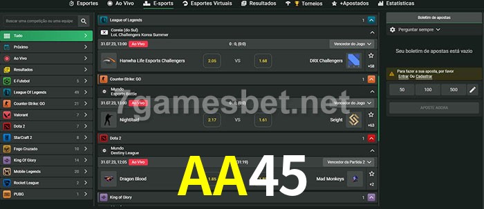 A aposta AA45 oferece aos jogadores a experiência mais conveniente de apostas em eSports!